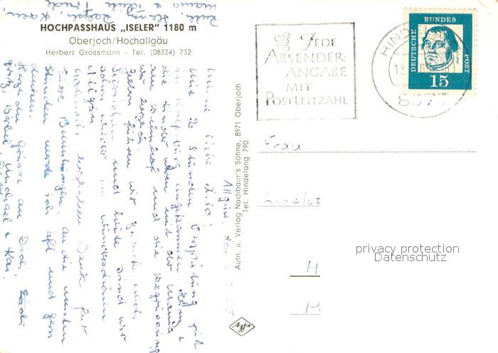 73646405 alte Postkarte Oberjoch Hochpasshaus Iseler postalisch gelaufen Erhaltung siehe scans [WerneD78] KatCode: 11110009780123