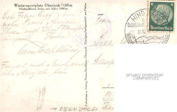 73792895 alte Postkarte Oberjoch Hochpasshaus Iserer m. Iserer Wintersportplatz Schnee postalisch gelaufen Erhaltung siehe scans [LiesaD40] KatCode: 11110009780123