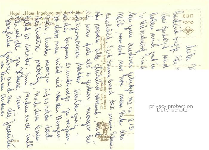 73647778 alte Postkarte Oberjoch Hotel Haus Ingeburg auf der Hoehe postalisch gelaufen Erhaltung siehe scans [WerneD78] KatCode: 11110009780123