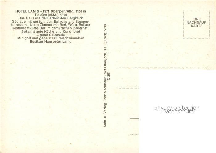 73765664 Oberjoch Hotel Lang Terrasse postalisch nicht gelaufen Erhaltung siehe scans [WerneD78] KatCode: 11110009780123
