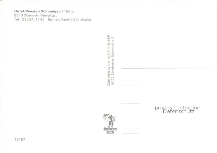 72227602 Oberjoch Hotel Pension Schweiger Fremdenzimmer Kaminzimmer postalisch nicht gelaufen Erhaltung siehe scans KatCode: 11110009780123