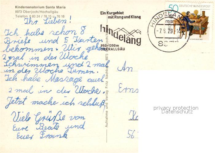 73680042 alte Postkarte Oberjoch Kindersanatorium Santa Maria postalisch gelaufen Erhaltung siehe scans [LiesaD40] KatCode: 11110009780123