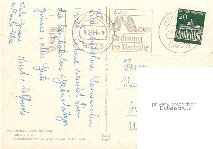72995572 alte Postkarte Oberjoch Kuehgrund Iseler Skipisten Teilansicht postalisch gelaufen Erhaltung siehe scans [AndreD76] KatCode: 11110009780123