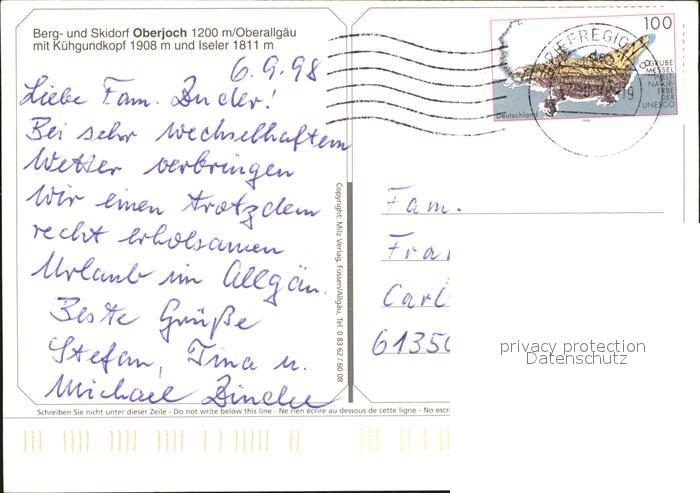 alte Postkarte Oberjoch Panorama Bergdorf Skidorfmit Kuehgundkopf und Iseler Allgaeuer Alpen postalisch gelaufen Erhaltung siehe scans