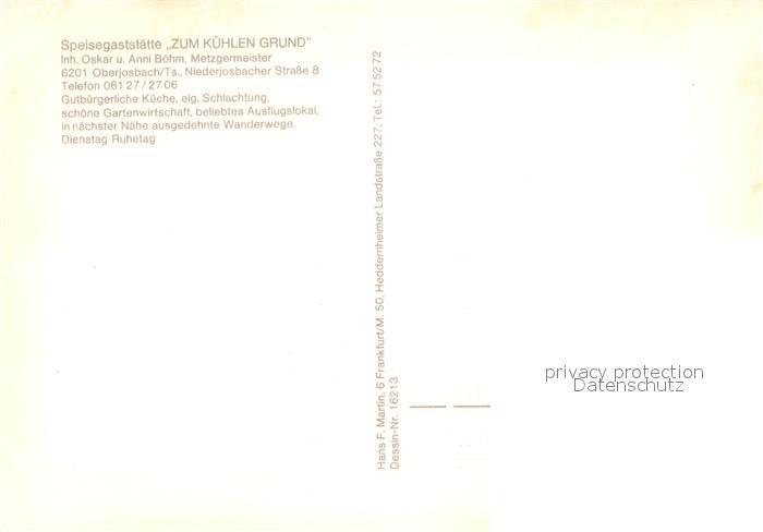 73615364 Oberjosbach Gaststaette Zum kuehlen Grund Terrasse Bar Gaststube postalisch nicht gelaufen Erhaltung siehe scans [WerneD78] KatCode: 11110006439011