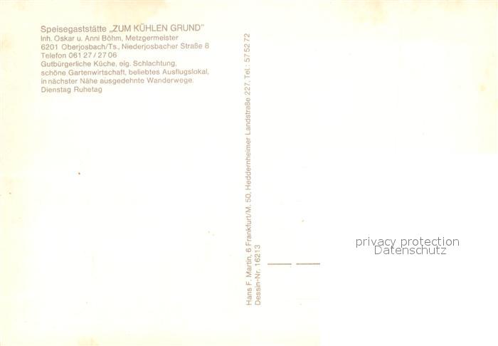 73615452 Oberjosbach Speisegaststaette Zum kuehlen Grund Terrasse Bar Gaststube postalisch nicht gelaufen Erhaltung siehe scans [WerneD78] KatCode: 11110006439011
