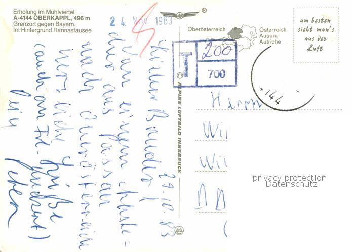 72846003 alte Postkarte Oberkappel Fliegeraufnahme Rannastausee Sprachlehrzentrum im Muehlviertel postalisch gelaufen Erhaltung siehe scans [LiesaD40] KatCode: 11390313041324