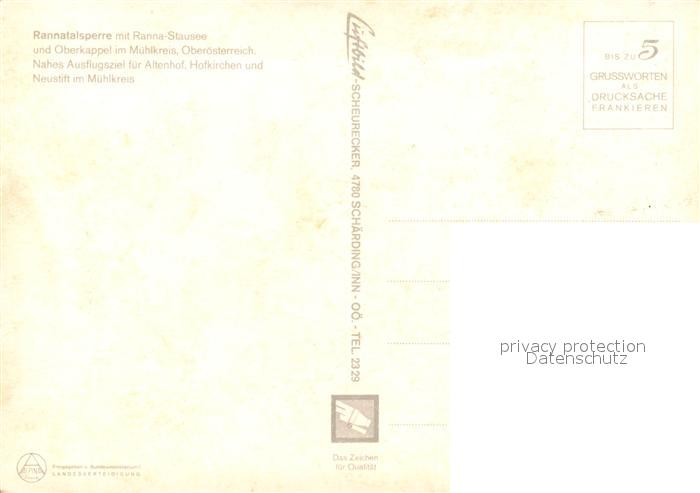 73291246 Oberkappel Fliegeraufnahme Rannatalsperre Altenhof Hofkirchen Neustift postalisch nicht gelaufen Erhaltung siehe scans [LiesaD40] KatCode: 11390313041324