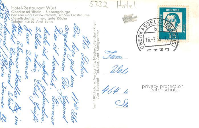 33701320 alte Postkarte Oberkassel Bonn Hotel Restaurant Wuest Pension und Gastwirtschaft postalisch gelaufen Erhaltung siehe scans [WerneD78] KatCode: 11110005314000