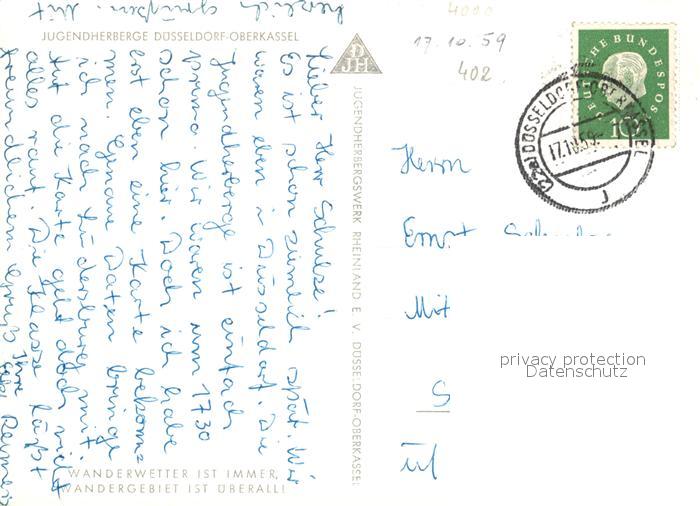 73086717 alte Postkarte Oberkassel Duesseldorf Jugendherberge postalisch gelaufen Erhaltung siehe scans [NatalD47] KatCode: 11110005111000