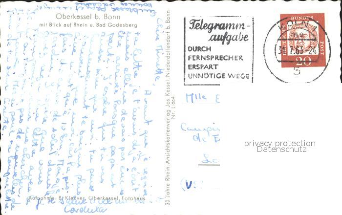 41995816 alte Postkarte Oberkassel Siegkreis Fliegeraufnahme Rhein Bad Godesberg postalisch gelaufen Erhaltung siehe scans KatCode: 11110005314000