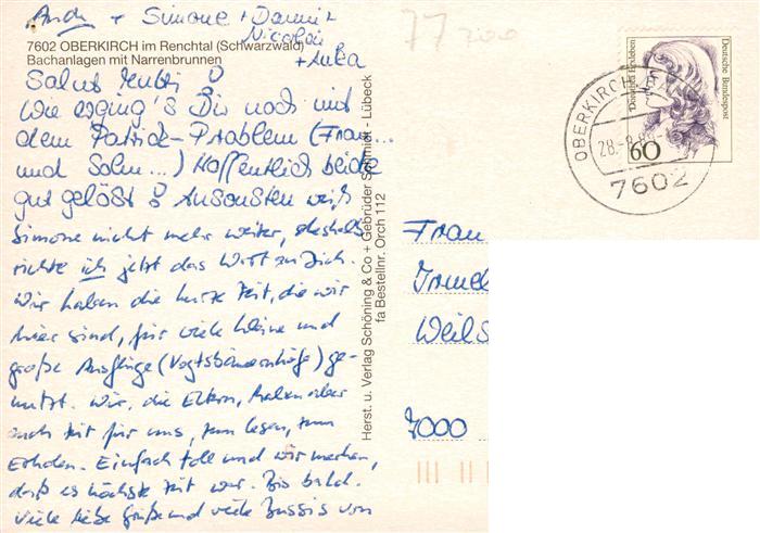73897796 alte Postkarte Oberkirch Baden Bachanlagen mit Narrenbrunnen postalisch gelaufen Erhaltung siehe scans [WerneD78] KatCode: 11110008317089