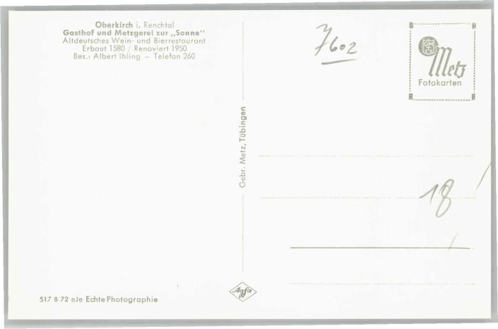 40712989 Oberkirch Baden Gasthof Metzgerei Zur Sonne KatCode 11110008317089
