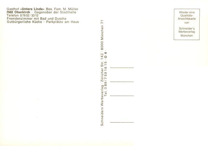 73904834 Oberkirch Baden Gasthof Untere Linde Gastraum Fachwerkhaus postalisch nicht gelaufen Erhaltung siehe scans [FriedD77] KatCode: 11110008317089