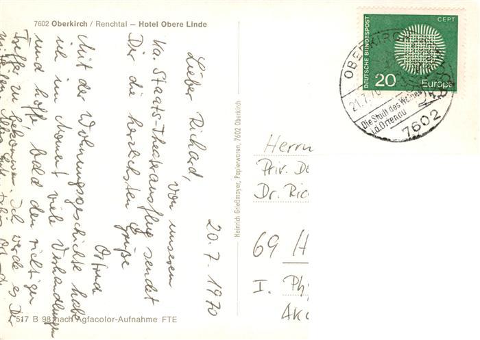 73897873 alte Postkarte Oberkirch Baden Hotel Obere Linde postalisch gelaufen Erhaltung siehe scans [WerneD78] KatCode: 11110008317089