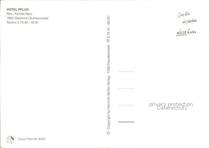 72578732 Oberkirch Baden Hotel Pflug postalisch nicht gelaufen Erhaltung siehe scans [LiesaD40] KatCode: 11110008317089