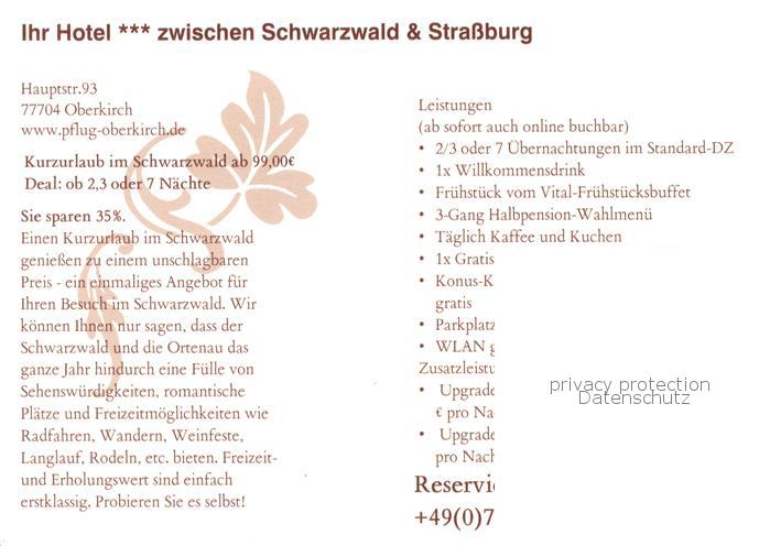 73760123 Oberkirch Baden Hotel Restaurant Pflug Zimmer Gaststube Burg postalisch nicht gelaufen Werbekarte (keine Postkarte) Erhaltung siehe scans [WerneD78] KatCode: 11110008317089