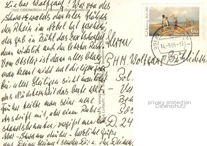 73629296 alte Postkarte Oberkirch Baden Renchtal Schwarzwald Fliegeraufnahme postalisch gelaufen Erhaltung siehe scans [FriedD77] KatCode: 11110008317089