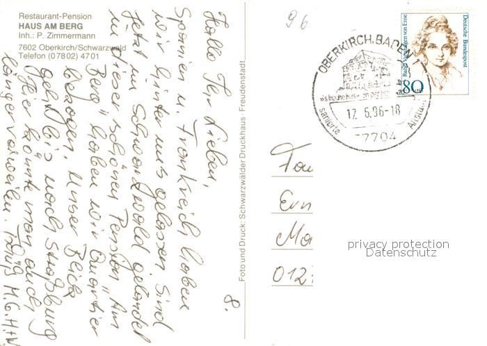 73660116 alte Postkarte Oberkirch Baden Restaurant Pension Haus am Berg Weinberge postalisch gelaufen Erhaltung siehe scans [FriedD77] KatCode: 11110008317089