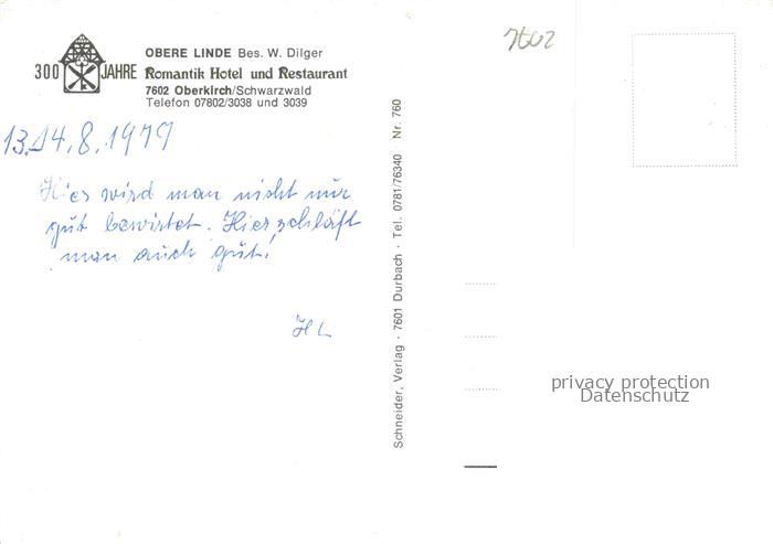 74100629 Oberkirch Baden Romantik Hotel und Restaurant Oberer Linde postalisch nicht gelaufen Erhaltung siehe scans [WerneD78] KatCode: 11110008317089