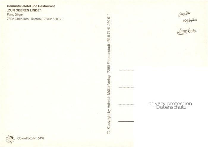 73845990 Oberkirch Baden Romantik Hotel und Restaurant Zur Oberen Linde postalisch nicht gelaufen Erhaltung siehe scans [FriedD77] KatCode: 11110008317089
