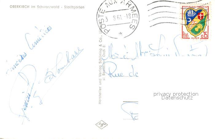 72937349 alte Postkarte Oberkirch Baden Stadtgarten postalisch gelaufen Erhaltung siehe scans [FriedD77] KatCode: 11110008317089