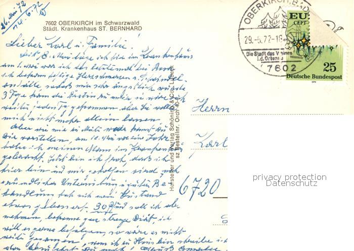 73022708 alte Postkarte Oberkirch Baden Staedtisches Krankenhaus Sankt Bernhard postalisch gelaufen Erhaltung siehe scans [KathaD81] KatCode: 11110008317089