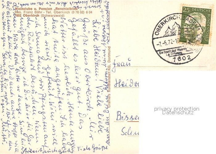 73569870 alte Postkarte Oberkirch Baden Weinstube Pension Renchtalblick Gaststube Panorama postalisch gelaufen Erhaltung siehe scans [WerneD78] KatCode: 11110008317089