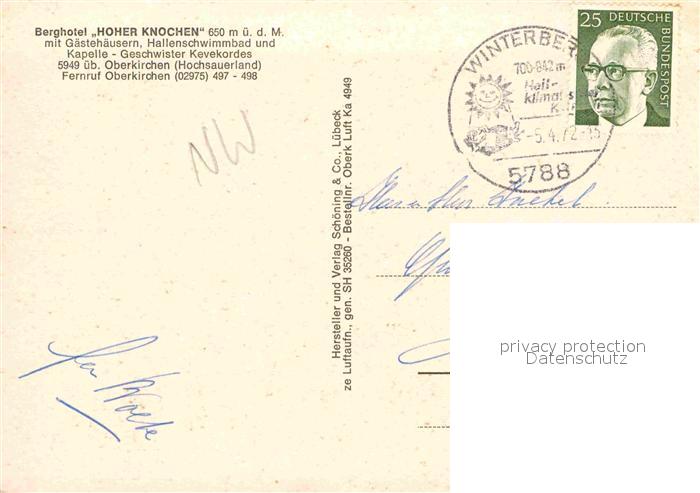 72675026 alte Postkarte Oberkirchen Sauerland Berghotel Hoher Knochen Fliegeraufnahme postalisch gelaufen Erhaltung siehe scans [WerneD78] KatCode: 11110005958040