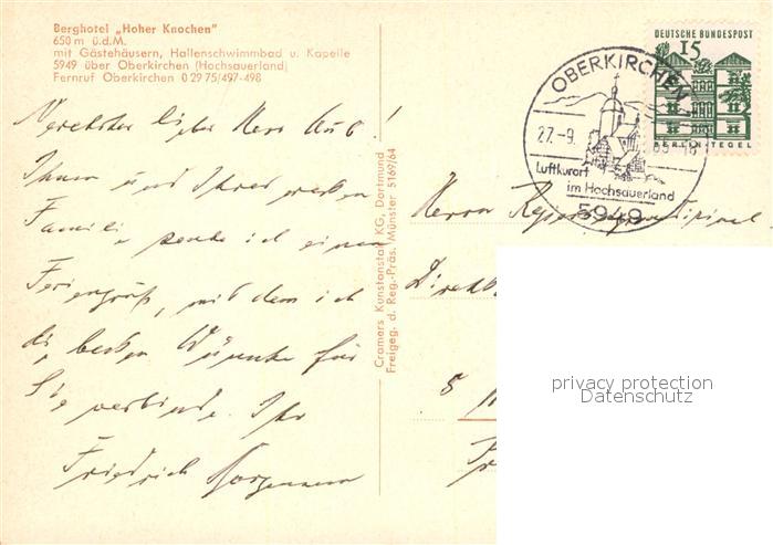 73125231 alte Postkarte Oberkirchen Sauerland Berhotel Hoher Knochen postalisch gelaufen Erhaltung siehe scans [NatalD47] KatCode: 11110005958040