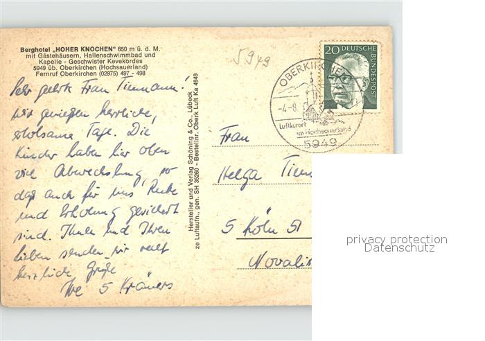 72481651 alte Postkarte Oberkirchen Sauerland Fliegeraufnahme Berghotel Hoher Knochen postalisch gelaufen Erhaltung siehe scans KatCode: 11110005958040