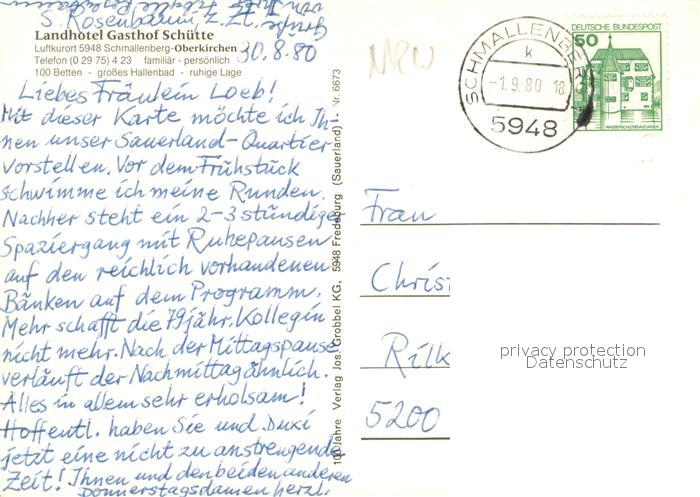 73717986 alte Postkarte Oberkirchen Sauerland Landhotel Gasthof Schuette postalisch gelaufen Erhaltung siehe scans [WerneD78] KatCode: 11110005958040