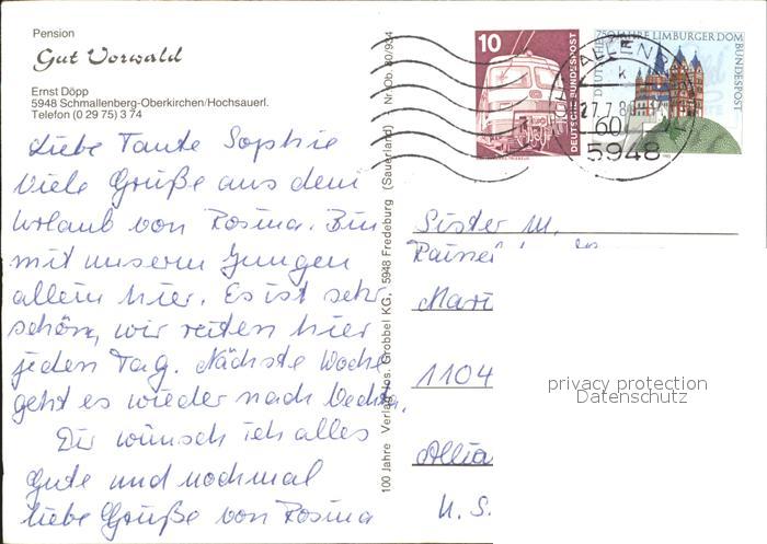 72237148 alte Postkarte Oberkirchen Sauerland Pension Gut Vorald postalisch gelaufen Erhaltung siehe scans KatCode: 11110005958040