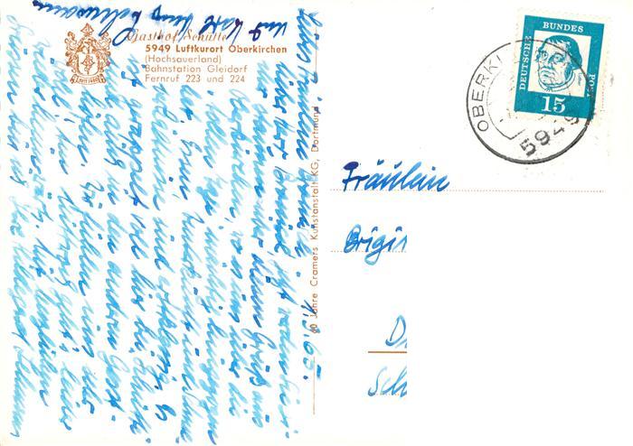 73885262 alte Postkarte Oberkirchen Sauerland Schmallenberg Gasthof Schuette postalisch gelaufen Erhaltung siehe scans [WerneD78] KatCode: 11110005958040