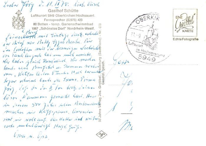 73905778 alte Postkarte Oberkirchen Sauerland Schmallenberg Gasthof Schuette Terrasse Kanal postalisch gelaufen Erhaltung siehe scans [FriedD77] KatCode: 11110005958040
