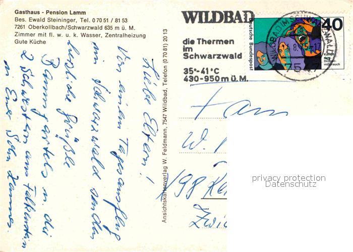 72863519 alte Postkarte Oberkollbach Gasthaus Lamm postalisch gelaufen Erhaltung siehe scans [NatalD47] KatCode: 11110008235055