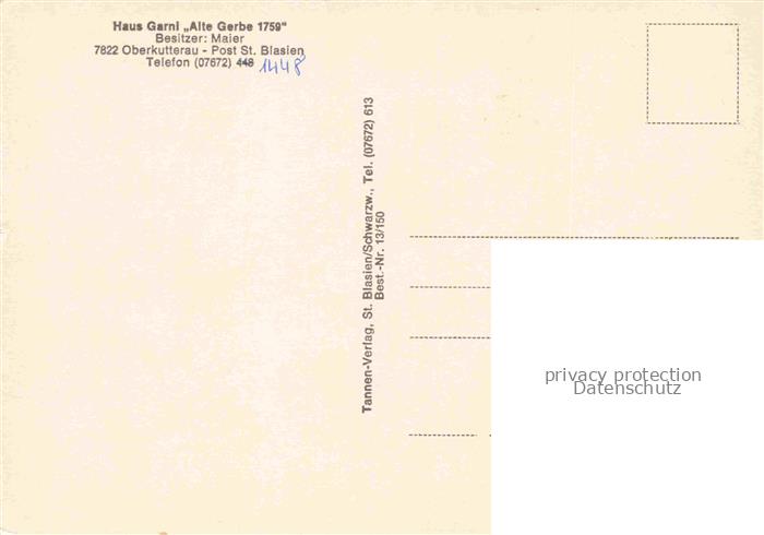 74084678 Oberkutterau Dachsberg BW Haus Garni Alte Gerbe 1759 postalisch nicht gelaufen Erhaltung siehe scans [WerneD78] KatCode: 11110008337027