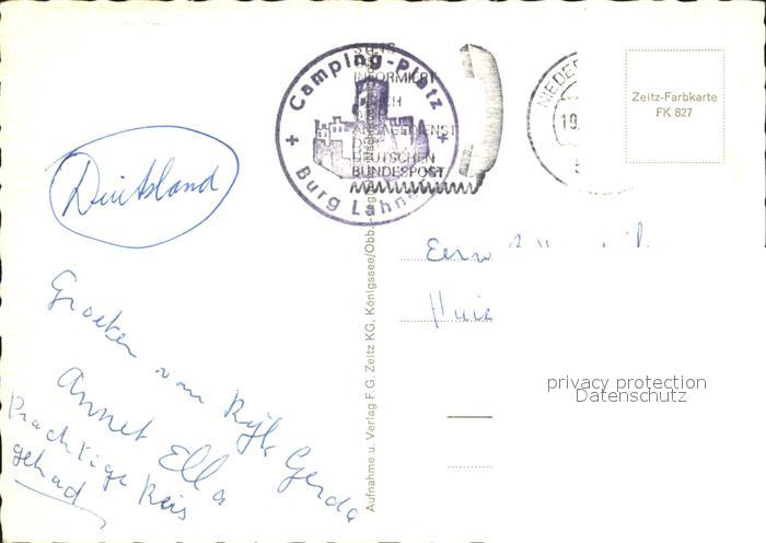 72223399 alte Postkarte Oberlahnstein Campingplatz Burg Lahneck postalisch gelaufen Erhaltung siehe scans KatCode: 11110007141075