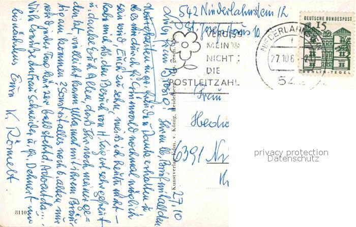 72920109 alte Postkarte Oberlahnstein Fliegeraufnahme mit Nieder und Oberlahnstein Lahnmuendung postalisch gelaufen Erhaltung siehe scans [WerneD78] KatCode: 11110007141075