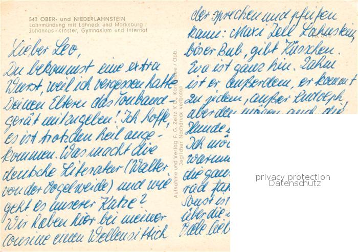 73663731 Oberlahnstein Fliegeraufnahme mit Niederlahnstein postalisch nicht gelaufen Erhaltung siehe scans [LiesaD40] KatCode: 11110007141075