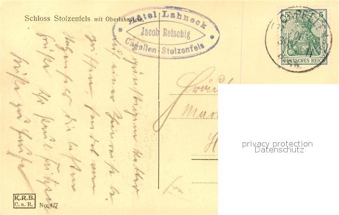73560194 alte Postkarte Oberlahnstein Schloss Stolzenfels postalisch gelaufen Erhaltung siehe scans [KathaD81] KatCode: 11110007141075