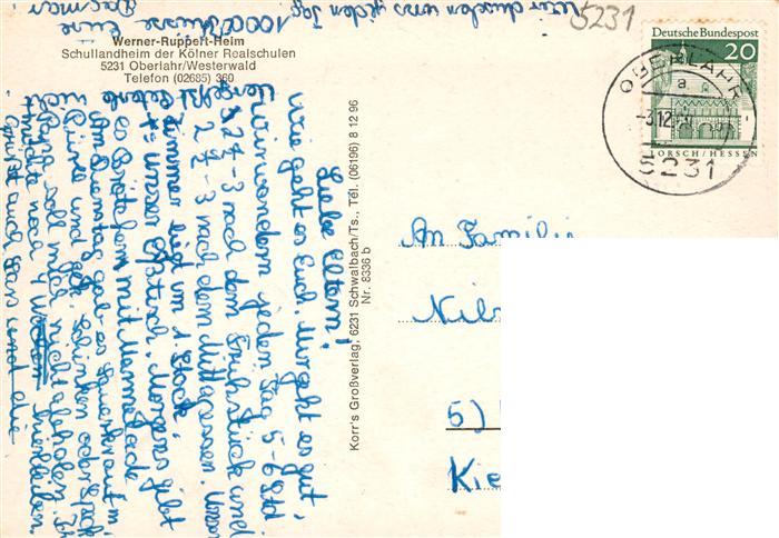 73883579 alte Postkarte Oberlahr Westerwald Deutsches Schullandheim Gastraeume postalisch gelaufen Erhaltung siehe scans [WerneD78] KatCode: 11110007132083