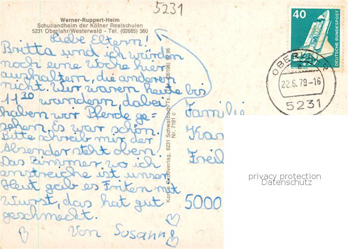 73870210 alte Postkarte Oberlahr Westerwald Deutsches Schullandheim Werner Ruppert Heim Gastraeume postalisch gelaufen Erhaltung siehe scans [WerneD78] KatCode: 11110007132083