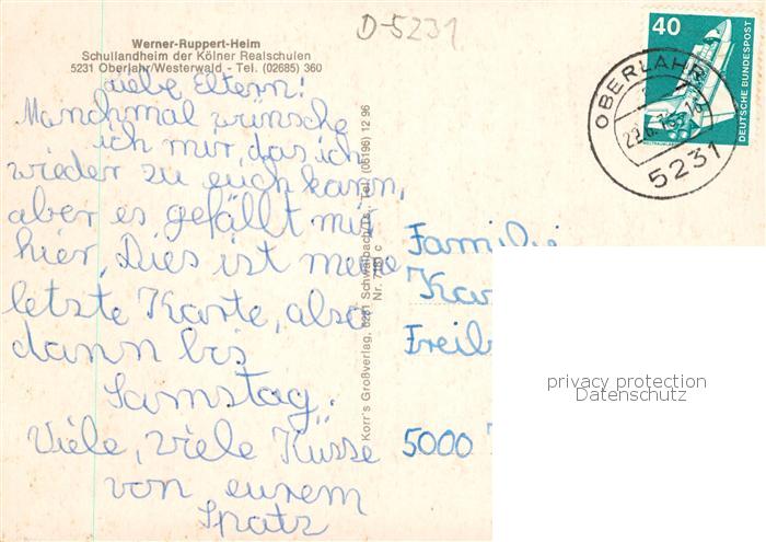 73870212 Oberlahr Westerwald Deutsches Schullandheim Werner Ruppert Heim Gastraeume postalisch nicht gelaufen Erhaltung siehe scans [WerneD78] KatCode: 11110007132083