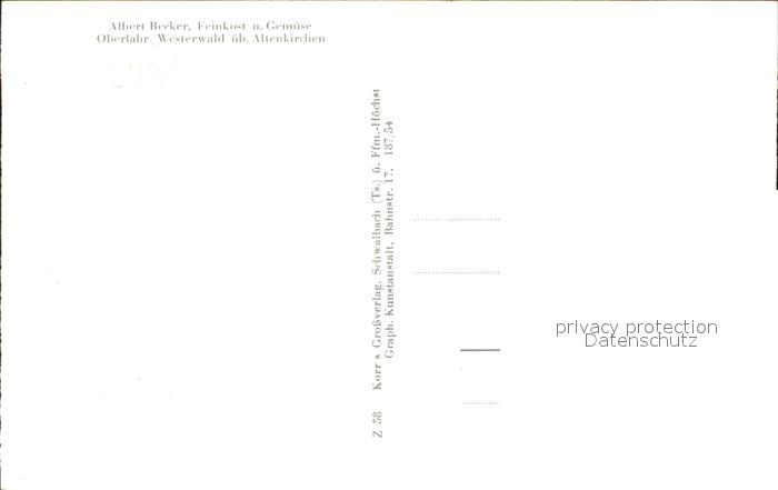 31720320 Oberlahr Westerwald Feinkost Albert Becker postalisch nicht gelaufen Erhaltung siehe scans KatCode: 11110007132083