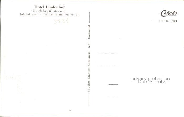 31720322 Oberlahr Westerwald Hotel Lindenhof postalisch nicht gelaufen Erhaltung siehe scans KatCode: 11110007132083