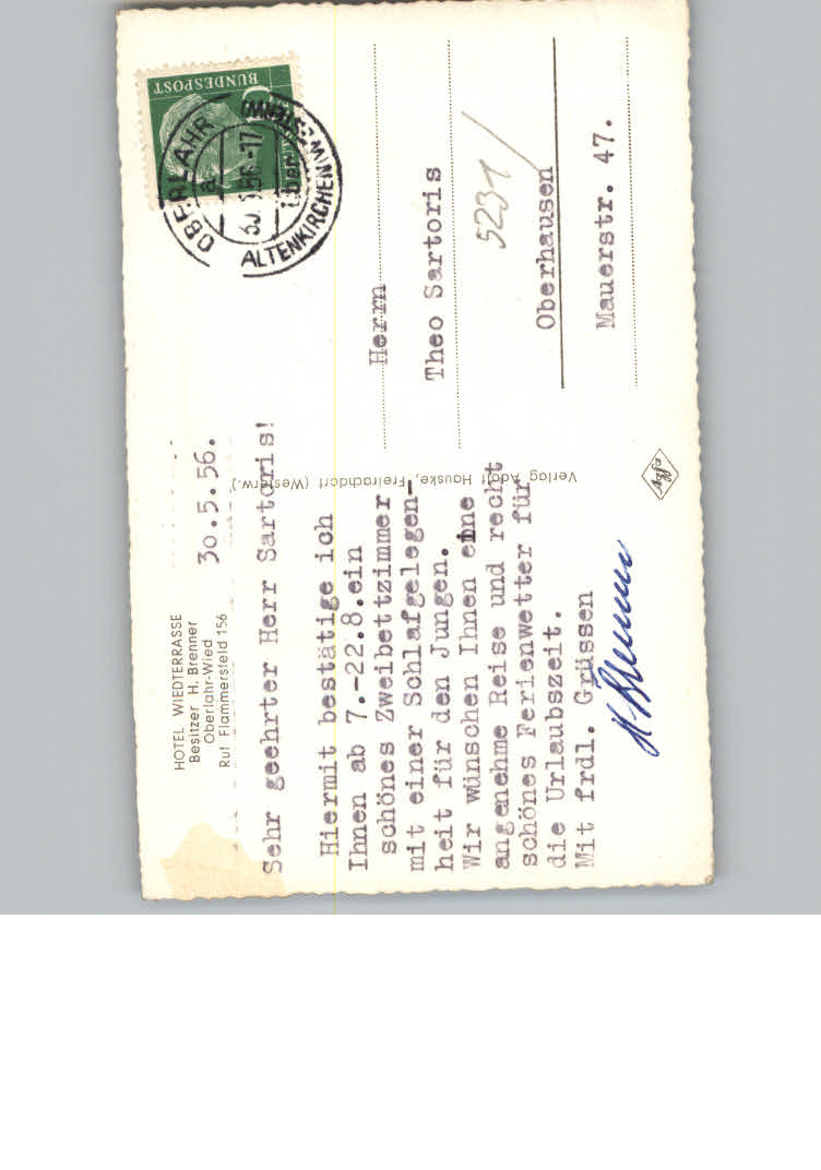 31137663 Oberlahr Westerwald Hotel Wiedterrasse postalisch nicht gelaufen KatCode: 11110007132083