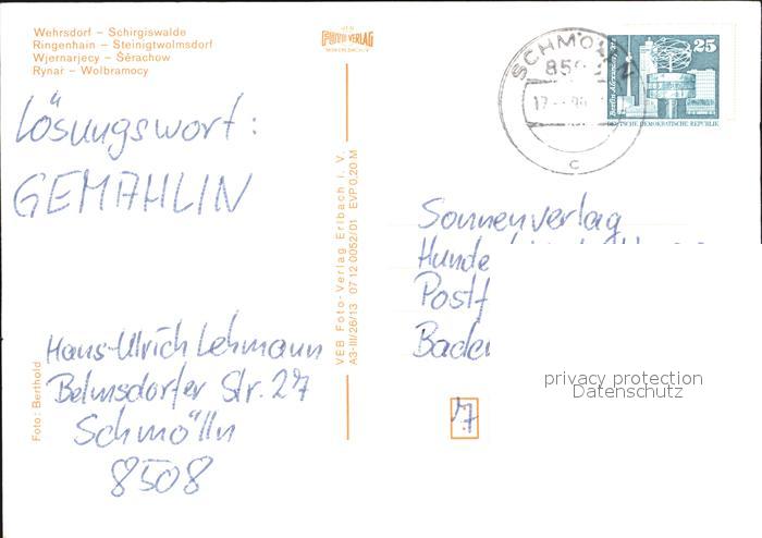 72461682 alte Postkarte Oberlausitz Region Wehrsdorf Schirgiswalde Ringenhain Steinigtwolmsdorf postalisch gelaufen Erhaltung siehe scans KatCode: 11110014263000