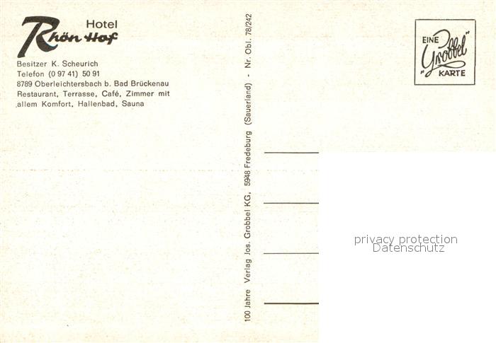 73666339 Oberleichtersbach Hotel Rh?n Hof postalisch nicht gelaufen Erhaltung siehe scans [LiesaD40] KatCode: 11110009672138