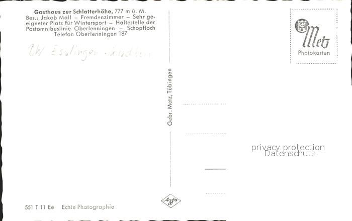 72173994 Oberlenningen Gasthaus zur Schlatterhoehe postalisch nicht gelaufen Erhaltung siehe scans KatCode: 11110008116079